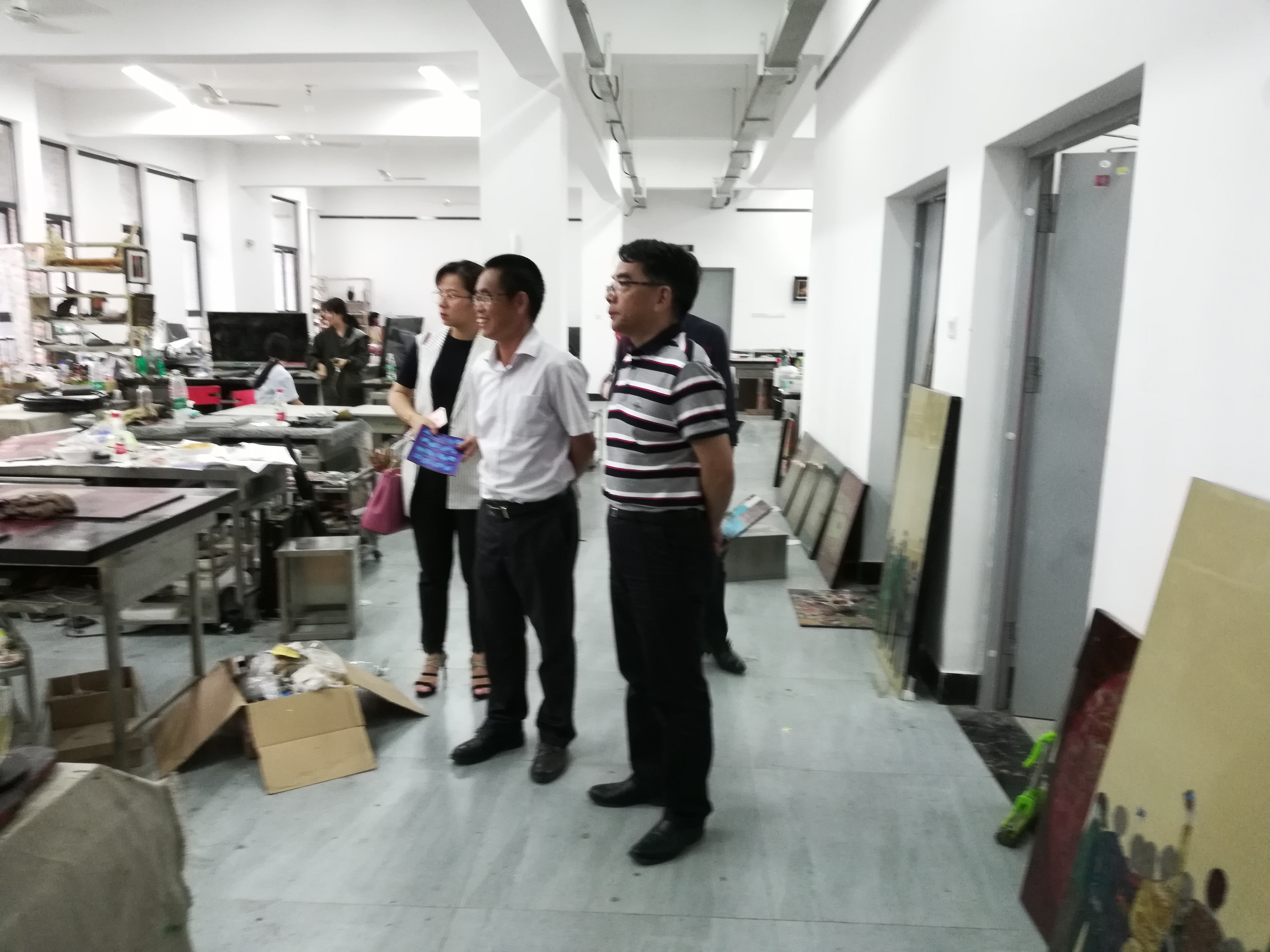 5月4日下午,学校经济与管理学院党委娄东生书记、校图书馆史丹双副馆长等一行3人来学院指导工作。在学院党委林文泰书记和林旭副书记的陪同下,娄东生书记一行边听91社区介绍 ,边参观了美术馆、一系一景、校园景观、漆艺馆等,还深入教室了解学生现场制作等,大家对学院的办学特色,取得的成绩以及美丽的校园给予高度赞扬,表扬学院校园建设越来越好,校园环境越来越美,学院面貌发生了很大变化。