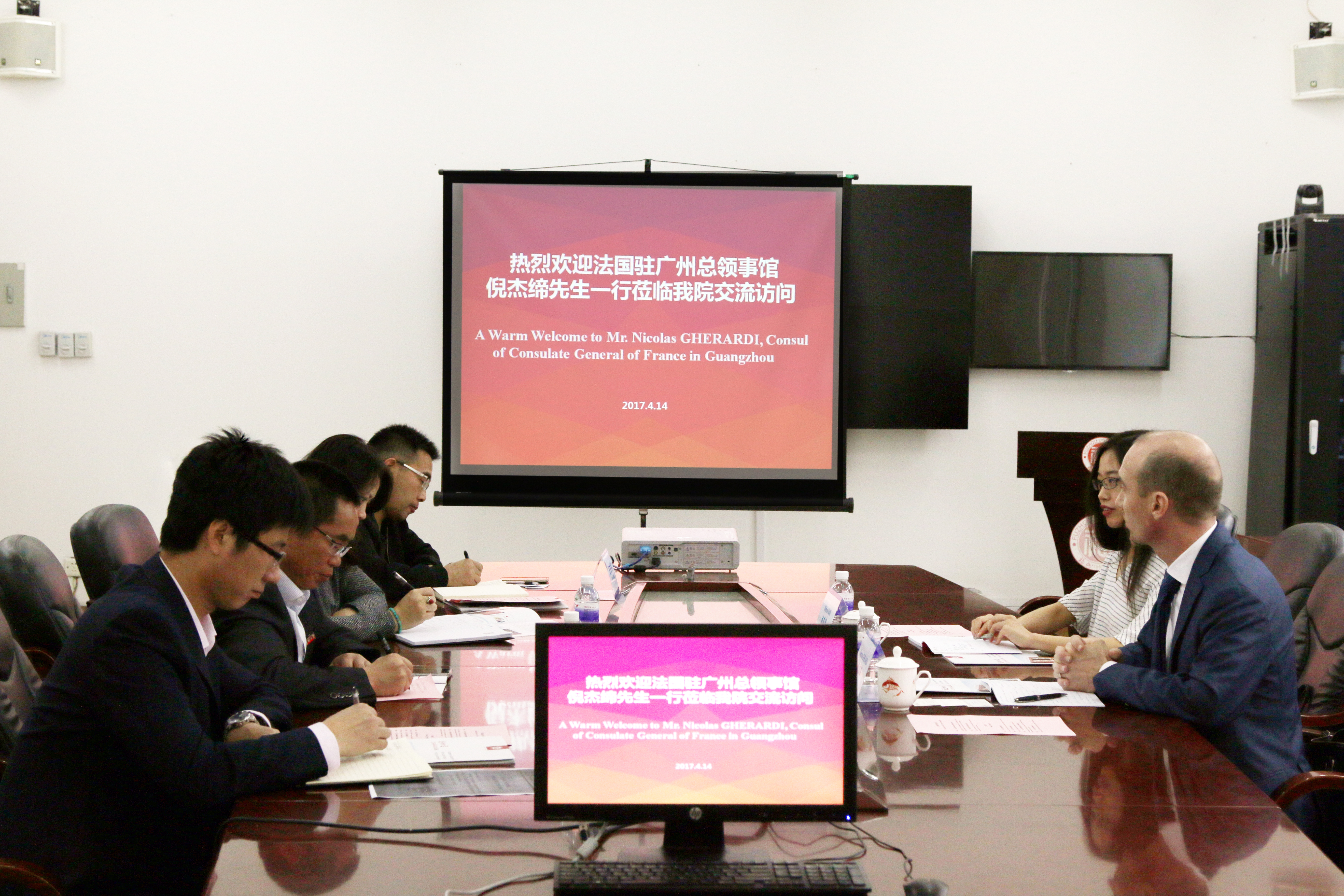 4月14日上午,法国驻广州总领事馆领事倪杰缔先生一行莅临91社区交流访问。